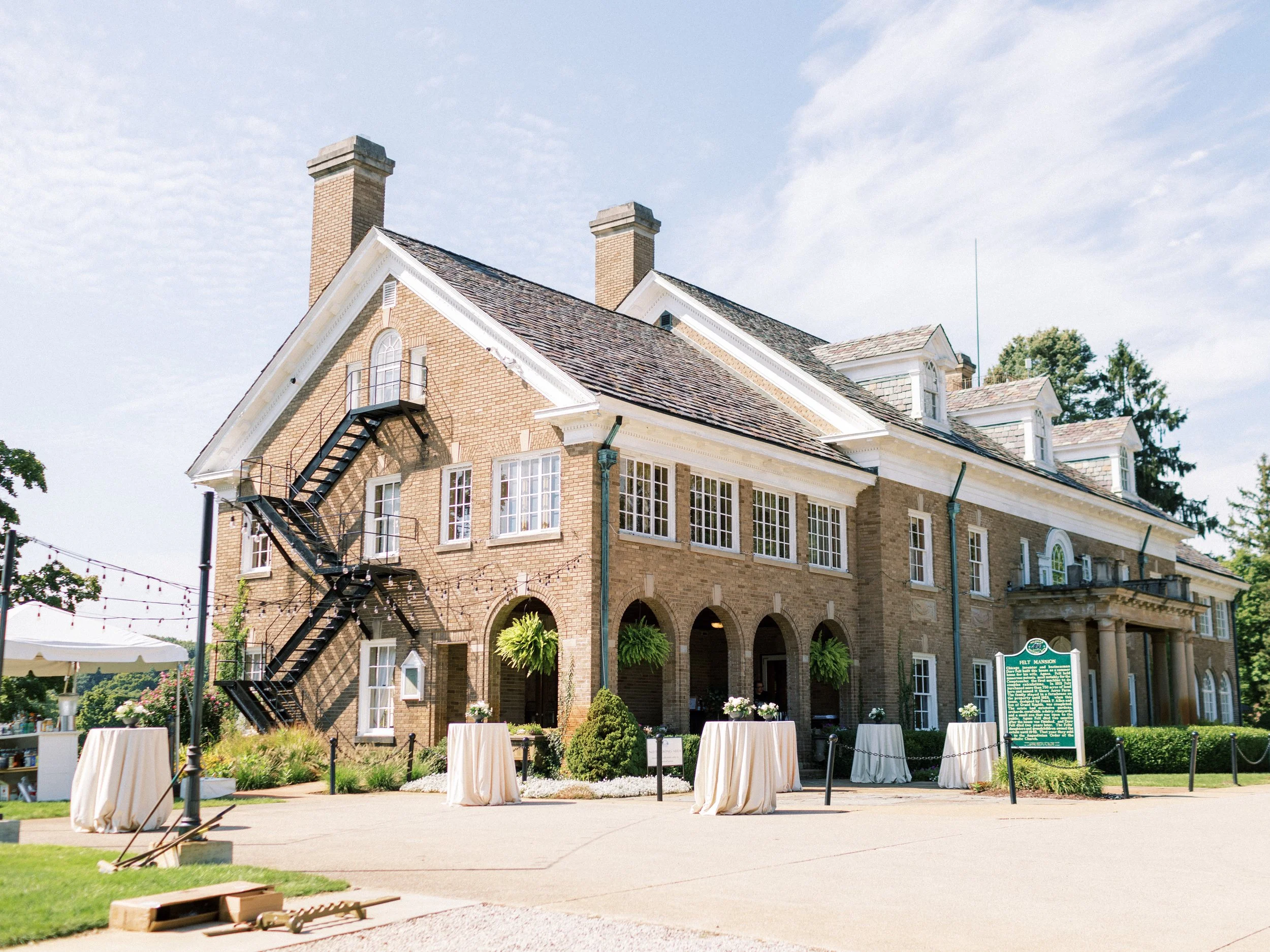 The estate is well prepared for Michigan weather. There are multiple ceremony back-up options. The tent provides covered reception space and the mansion’s interior can accommodate guests during inclement weather. Clear umbrellas are available for use at the estate during your visit.